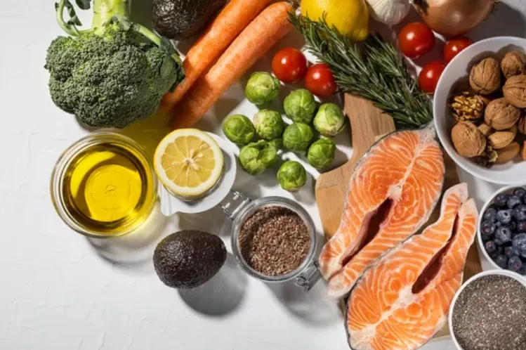 해산물, 통곡물, 올리브유, 신선한 채소, 견과류 등 저칼로리, 고영양 식품으로 구성되어 있습니다.