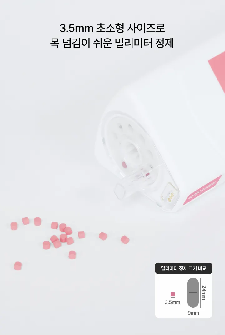 알고케어 랩스는 정밀한 용량 제공과 편안한 목 넘김을 위해 3.5mm 초소형 사이즈 정제와 4mm 초소형 사이즈 캡슐을 개발하였습니다.