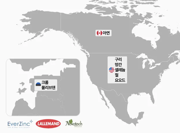 아연을 공급하는 캐나다의 EverZinc社는 북미, 유럽, 아시아 3개 대륙에 위치하며 50개국 이상에 공급하고 있는 아연 전문 글로벌 제조업체입니다.