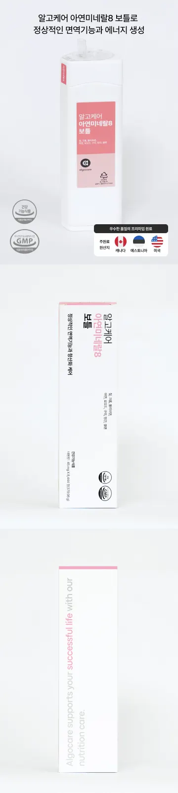 알고케어 아연미네랄8 보틀은 유럽과 미국과 캐나다에서 엄선된 프리미엄 원료를 사용합니다.