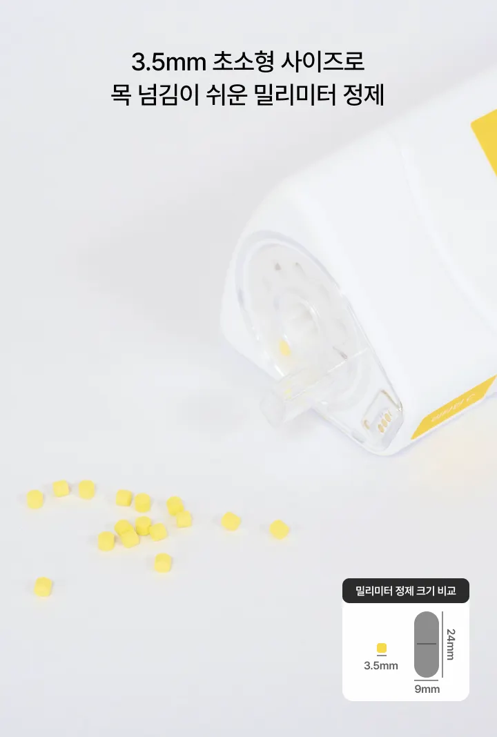 알고케어 랩스는 정밀한 용량 제공과 편안한 목 넘김을 위해 3.5mm 초소형 사이즈 정제와 4mm 초소형 사이즈 캡슐을 개발하였습니다.