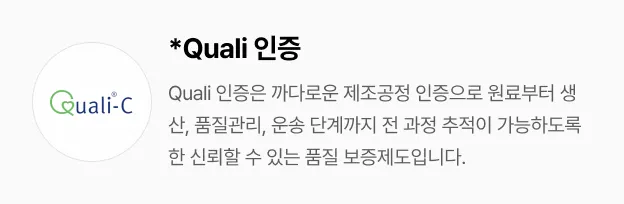 또한 Quali 인증의 엄격한 품질관리기준을 보유하고 있습니다.