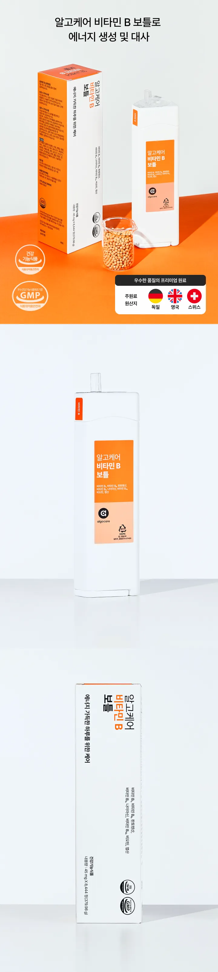 알고케어 비타민 B 보틀은 유럽과 미국, 아시아에서 엄선된 프리미엄 원료를 사용합니다.