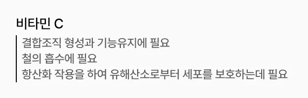 비타민 C는 대표적인 항산화 성분입니다. 항산화란 산화적 스트레스로부터 신체를 보호하는 것을 의미합니다. 산화적 스트레스를 유발시키는 활성산소는 정상적인 대사과정에서 자연적으로 발생합니다. 활성산소는 매우 불안정하여 필요 이상으로 생성되거나 축적되는 경우 DNA 및 세포를 손상시킵니다. 따라서 지속적으로 발생하는 활성산소를 제거하거나 손상된 세포를 위해 항산화 시스템이 중요합니다.