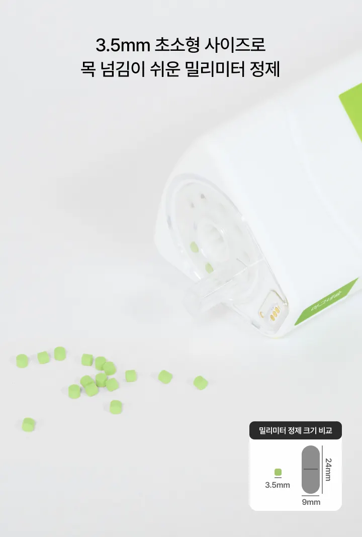 알고케어 랩스는 정밀한 용량 제공과 편안한 목 넘김을 위해 3.5mm 초소형 사이즈 정제와 4mm 초소형 사이즈 캡슐을 개발하였습니다.