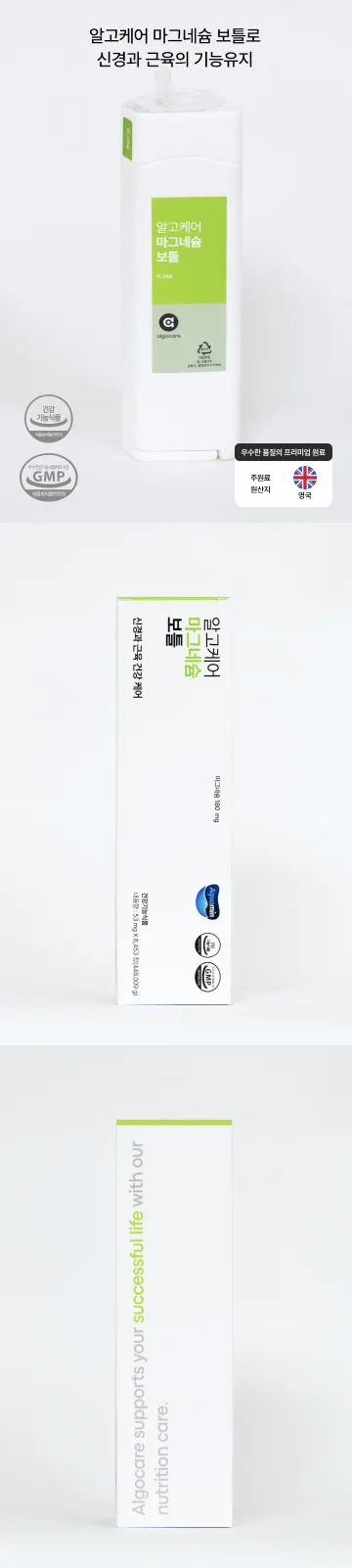 알고케어 마그네슘 보틀은 GMP 인증시설에서 엄격한 품질 관리 및 인증 시스템 하에 안전하고 위생적으로 제조되며, 식약처 지정 기관과 제조원의 품질검사를 거쳐 판매됩니다.