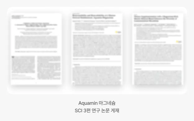 주원료 Aquamin 마그네슘은 SCI급 저명 학술지에 총 3편의 논문이 수록된 안전성이 검증된 마그네슘입니다.