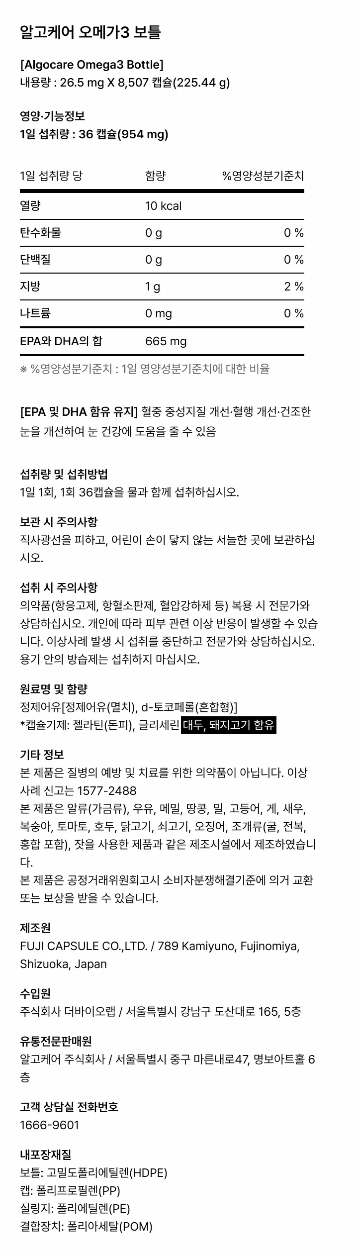 알고케어 오메가3 보틀은 국제적으로 공인된 미국 국립위생협회(NSF)의 인증을 받은 후지캡슐에서 엄격한 품질관리 및 인증 시스템하에 안전하고 위생적으로 제조됩니다.