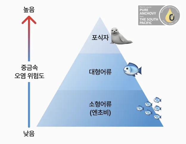 깨끗한 남태평양에서 자란 초소형 어류 엔초비만을 추출한 원료를 사용하였습니다. ORIVO*의 제 3자 기관에서 100% 남태평양 엔초비 인증을 받았습니다. 플랑크톤을 주로 섭취하는 먹이사슬 최하위 단계에 있는 엔초비로부터 추출하였기 때문에 중금속, 환경오염으로부터 안전합니다.